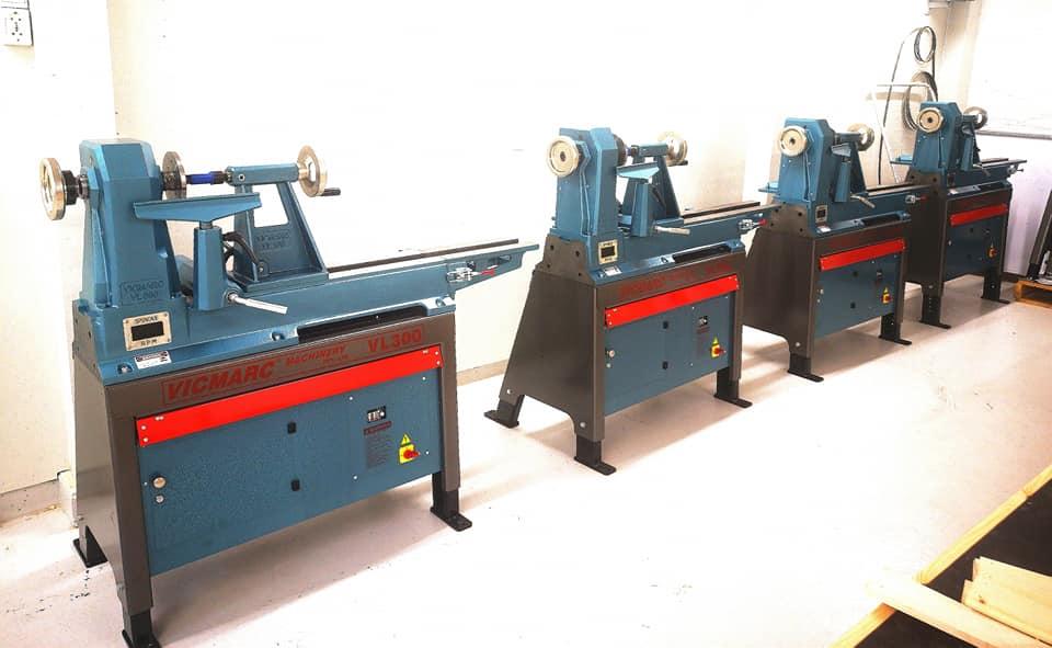 I kurslokalet er det syv tredreiebenker tilgjengelig - En til hver kursdeltaker. Hvorav 5 stk Vicmarc VL300, 1 stk Stratos FU230 og 1 stk Twister FU200. Topp kvalitet! Hver benk er fullt utstyrt med chuck, drivdubb, senterpiss, 14 ulike tredreiejern (hovedsakelig Hamlet), pusseutstyr, passer, borchuck, planskive, tredreiefrakk etc.